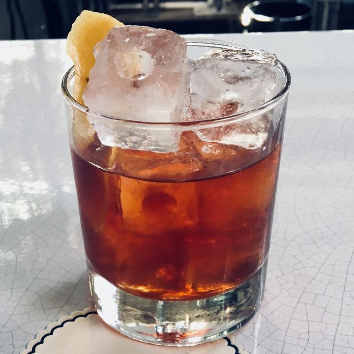 Line an Old Fashioned glass with Angostura Bitters, fill with Ice and pour