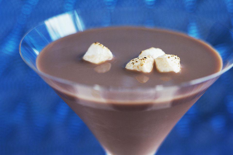 Shake over ice & serve, Dust with chocolate powder mini marshmallows