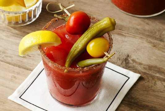 Serve over ice & garnish with salt & pepper, Celery stick, wedge of lemon